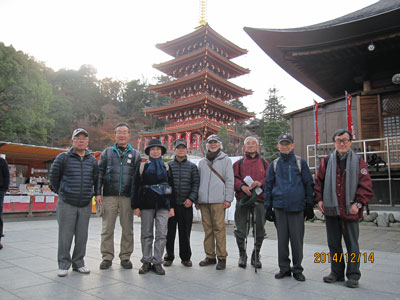 最後に高幡不動尊の境内を散策し、不動堂に御参りした。みんなの足が達者だったので予定より早く最終目的地に着き、夜の忘年会まで時間はあるし、外は寒いしで、高幡不動駅のビル内にあるファミレスで一休み。コーヒーでもという話だったのがそうはいかず、ビールやワインを注文した。外では細い道を一列になって黙々と歩いていたが、アルコールが入るにつれ饒舌になり賑やかな空間ができた。やはりこの会はアルコール会で本領を発揮するのがわかった。