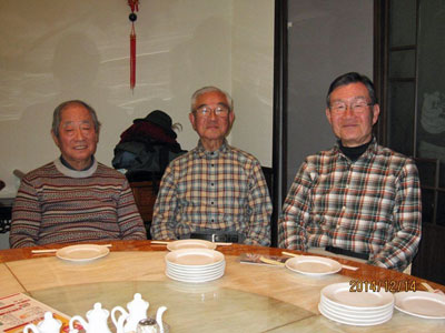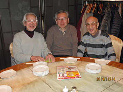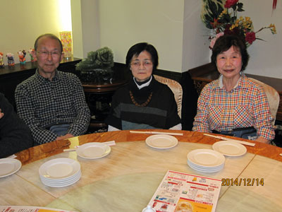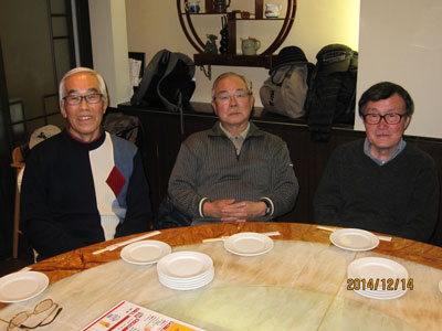忘年会は府中くるるの中華料理店"祥龍餃子房"で催された。"かたらいの路"を歩いた8名に5名が加わり13名の参加。一つの大きなターンテーブルに椅子を寄せ合いながら全員座り、窮屈かと思われたが、向かいの人とも話ができるし、全員の顔が見えて丁度よい具合だった。